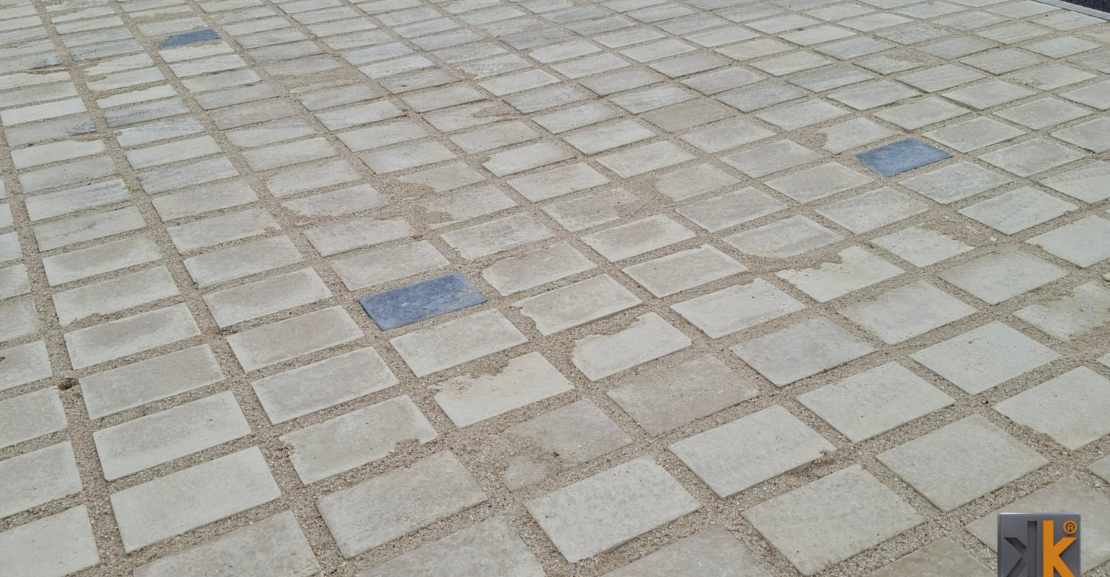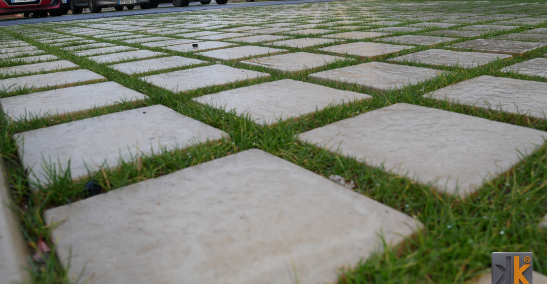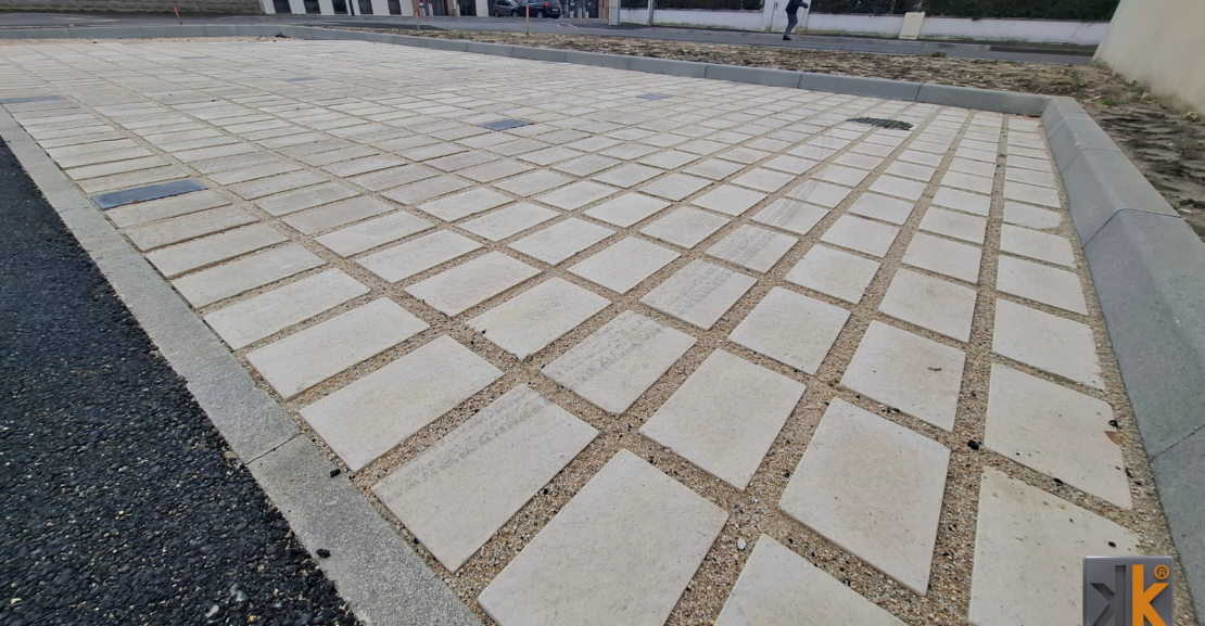 Pavés 20×20 écarteur de 15mm aspect pierre flammée